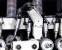 Три независимых пневматических регулятора, управляющие прижимом трех независимых групп подающих роликов, обеспечивают безупречное позиционирование заготовки в процессе обработки в каждой зоне. Настройка усилия прижима каждой группы прижимных роликов производится быстро и удобно с центрального пульта упрвления, при этом нет необходимости открывать защитное ограждение. |