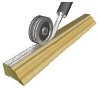 Верхние прижимные ролики осуществляют надежную фиксацию подаваемых профильных заготовок к резиновым накладкам конвейера и позволяют получать высокое качество накатки рельефа. Имеющиеся на рабочем столе боковые направляющие настраиваются на ширину заготовок. На них остаются излишки наносимой на заготовки пульпы, которые вручную удаляются оператором и используется повторно. |