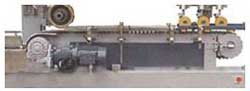 Станок имеет систему конвейерной подачи заготовок из двух цепей шириной 110 мм. Цепи снабжены резиновыми прокладками, обеспечивающими надежную подачу заготовок в процессе накатки рельефа без нанесения повреждений поверхности перемещаемого материала. Привод конвейера осуществляется от электродвигателя через редуктор с механическим вариатором для бесступенчатого изменения скорости подачи в зависимости от обрабатываемого материала. |