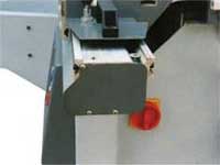 Станок оборудован двумя пильными узлами – основным и подрезным. Подрезная пила имеет попутное вращение относительно подачи заготовки, и в процессе обработки прорезает паз в облицовочном материале, что позволяет без сколов раскраивать ламинированные листы ДСП и МДФ.