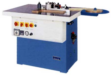 Предназначен для облицовывания прямолинейных и криволинейных кромок мебельных щитов натуральным полосовым или синтетическим рулонным материалом, а также натуральной древесиной толщиной до 3 мм. Подача кромочного материала происходит автоматически. Скорость вращения клеенаносящего вала регулируется.