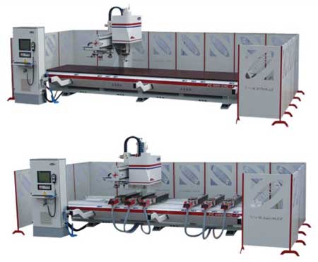 Универсальный многооперационный обрабатывающий центр предназначен главным образом для изготовления элементов лестниц, мебели, фасадов и других изделий из дерева различных пород. Обрабатывающий центр обеспечивает высокую производительность и гибкость при выполнении следующих операций: фрезерование профилей, (фасады, филенки), фрезерование по контуру, сверление сквозных и глухих отверстий в пласти и торцах изделий, пропиливание пазов в щитовых деталях из деревянного массива, МДФ, ДСП и др.