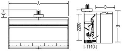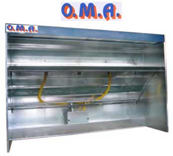 Камера состоит из оцинкованных металлических панелей, соединенных между собой болтами. Боковые панели и перегородки являются несущими, на крыше смонтирован центробежный вентилятор. Исполнение в различных модификациях: только всасывающий фронт, всасывающий фронт с дополнительными стенами и удлиненной крышей плюс ко всему нижние ванны, оснащенные решеткой, причем так же существует два варианта высоты,