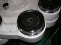 Сателлиты с вакуумными присосками имеют возможность вращаться вокруг своей оси с помощью передаточных шестерен от привода вращения рабочего стола без вращения самого стола. Обеспечивается возможность обработки круглых деталей минимальных размеров, установленных на одном из сателлитов.