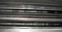 Подача стекла в зону мойки осуществляется в горизонтальной плоскости с помощью конвейера с обрезиненными вальцами. Обеспечивается надежное и бережное перемещение стекла без повреждения пласти./p>