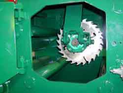 Распил на станке осуществляется посредством вальцевой подачи доски либо бруса на вращающиеся пилы, при этом верхнее расположение пильного вала позволит избежать забивания опилом подвижных частей механизма раздвижения пил.
