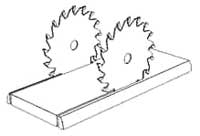 В кромкообрезном варианте две пилы стоят неподвижно, одна пила плавающая. Установка расстояния между пилами производится с помощью винтовой передачи, что позволяет быстро и точно фиксировать расстояние между пилами в любых пределах от 75 до 300 мм.