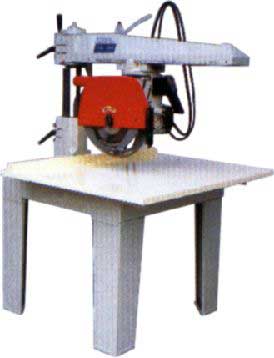 Пила с электродвигателем крепится на каретке, которая обеспечивает перемещение пилы параллельно над плоскостью стола. Пильная каретка располагается на колонне и имеет возможность поворота в горизонтальной плоскости для углового пиления (вращение вокруг колонны) и поворота пилы в вертикальной плоскости.