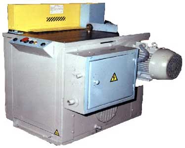 В коробчатой станине установлен пильный вал с приводом от электродвигателя через клиноременную передачу. Вал установлен в качающейся рамке, которая за счет гидропривода выдвигает пилу снизу над плоскостью стола.
