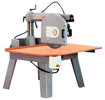 Пила с электродвигателем крепится на каретке, которая обеспечивает перемещение пилы параллельно над плоскостью стола. Пильная каретка располагается на колонне и имеет возможность поворота в горизонтальной плоскости для углового пиления. Станок снабжен защитой пилы, позволяющей устанавливать необходимую глубину пропила и поворотным узлом, позволяющим изменять угол наклона пилы в плоскости перпендикулярной плоскости стола от 0 до 45 градусов.