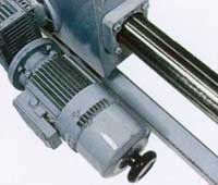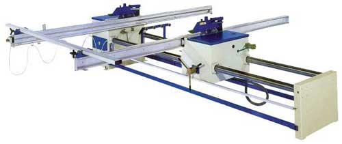 С помощью электродвигателя правый пильный узел перемещается по двум жестким стальным направляющим на необходимиый размер.