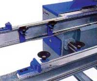 Подача заготовок осуществляется по высокоточным полированным металлическим балкам. В базовой комплектации станка перемещение материала осуществляется вручную, но по запросу возможна автоматическая моторизированная подача.