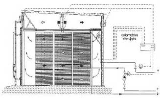 Несущая конструкция сделана из алюминиевых столбов и балок, стены камер - из панельных плит, состоящих из листового алюминия и слоя жёсткого пенополиуретана толщиной 150 мм. В качестве уплотнителей стыков панелей применяется силиконовый герметик. Наружная сторона стены изготовлена из профильного оцинкованного листа. Камера оборудована отопительно-вентиляционной системой. Теплообменники и вентиляторы установлены вверху камеры, над фальшпотолком. Осевые алюминиевые реверсивные вентиляторы специального исполнения выдерживают температуру до 90 град. С. и влажность 100%. Диаметр вентиляторов и их мощность строго рассчитываются под каждого заказчика. Нагреватели биметаллические, защищенные от воздействия агрессивной среды (повышенная температура, влажность, кислотность) с алюминиевым оребрение. Размеры и количество нагревательных модулей рассчитываются индивидуально, в зависимости от размеров сушильной камеры, для обеспечения оптимальных режимов сушки пиломатериалов. Теплоноситель - горячая вода или пар. Объём загрузки камер при использовании 60% загрузочного пространства порядка 43 - 100 м3 пиломатериала. Управление процессом сушения осуществляется с помощью микропроцессора МSSD-01M4 или МSSD-02. Работой камер с автоматикой МSSD-02 может управлять Компьютерная Система Управления и Контроля Сушки Древесины КSD-01.
