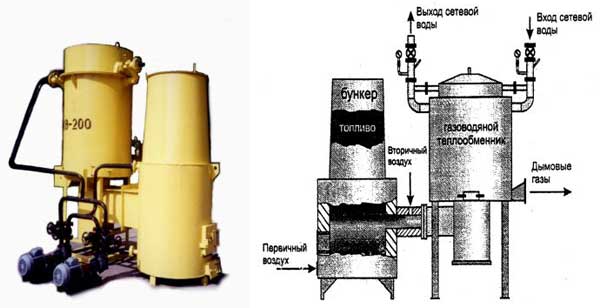 Котел водогрейный предназначен для теплоснабжения жилых, общественных, промышленных зданий и сооружений, отопление сушильных камер. В состав котла входит: газогенераторная топка, загрузочный бункер, теплообменник, жаровая труба. Насосы водяные типа ВКС 4/28, вентили, арматура - поставляются по отдельному заказу.