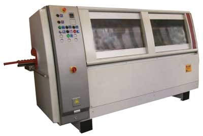 Подача заготовок осуществляется с помощью цепного транспортера, на котором закреплены капролоновые направляющие с резиновыми накладками. Обеспечивается низкий коэффициент трения направляющих, что способствует долговечности работы транспортера, и исключается проскальзывание заготовок и повреждение поверхности при обработке. |