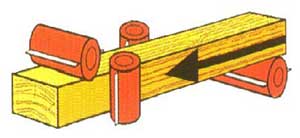 Подача осуществляется четырьмя металлическими рифлеными и одним вальцом с полиуретановым покрытием по всей зоне обработки;