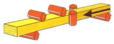 Первая пара подающих роликов металлические рифленые, это позволяет надежно подавать заготовку в зону резания;