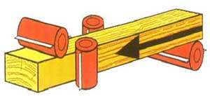 Верхние нижние рифленые приводные вальцы надежно подают в зону обработки даже влажную древесину;