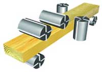 Ïðèâîäíûå âåðõíèå ðèôëåíûå ðîëèêè íà âõîäå + íèæíèé ïðèâîäíîé ðèôëåíûé ðîëèê ïîçâîëÿþò îáðàáàòûâàòü ìàññèâíûå çàãîòîâêè è çàãîòîâêè åñòåñòâåííîé âëàæíîñòè. |