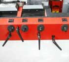 Òðè íåçàâèñèìûõ ïíåâìàòè÷åñêèõ êîíòðîëëåðà óïðàâëÿþùèå ïðèæèìîì ïðîòÿãèâàþùèõ ðîëèêîâ îáåñïå÷èâàþò áåçóïðå÷íîå ïîçèöèîíèðîâàíèå çàãîòîâêè â ïðîöåññå îáðàáîòêè â êàæäîé çîíå. Íàñòðîéêà ïðèæèìíûõ ðîëèêîâ ïðîèçâîäèòñÿ áûñòðî è óäîáíî ñ îïåðàòîðñêîãî ìåñòà, ïðè ýòîì îòêðûâàòü çàùèòíûé êîæóõ íå íàäî. |