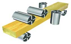 Приводные верхние рифленые ролики на входе + нижний приводной рифленый ролик позволяют обрабатывать массивные заготовки и заготовки естественной влажности. |