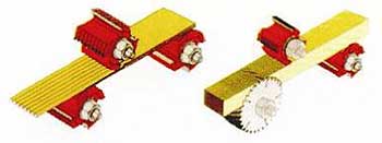 Обеспечивают равномерную и мощную подачу заготовок в зону обработки. Прижим роликов - пневмоцилиндрами с возможностью регулировки усилия. Органы регулировки пневмоприжимов вынесены на отдельную панель и снабжены индивидуальными манометрами. |