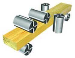 Приводные верхние рифленые ролики на входе и нижний приводной рифленый ролик позволяют обрабатывать массивные заготовки и заготовки естественной влажности, обеспечивая высокоточную и надежную подачу заготовок. |