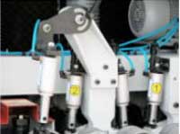 Три независимых пневматических регулятора, управляющие прижимом трех независимых групп подающих роликов, обеспечивают безупречное позиционирование заготовки в процессе обработки в каждой зоне. Настройка усилия прижима каждой группы прижимных роликов производится быстро и удобно с центрального пульта упрвления, при этом нет необходимости открывать защитное ограждение. |