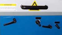 Íàñòðîéêà áîêîâîé íàïðàâëÿþùåé ëèíåéêè è ïîäàþùåãî ñòîëà ëåãêî ïðîèçâîäèòñÿ ïîñðåäñòâîì ðû÷àãîâ áûñòðîé íàñòðîéêè ñ íàäåæíîé ôèêñàöèåé ðóêîÿòêàìè çàæèìà. |