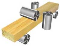 Служат для подачи заготовки в зону обработки ножевыми головками. Рифление служит для исключения проскальзывания ролика и обеспечивает надежную, стабильную подачу. |