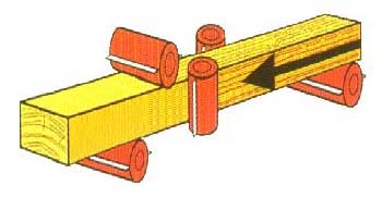 Первая пара подающих роликов металлические рифленые, это позволяет надежно подавать заготовку в зону резания;