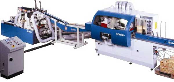 подача заготовок одинаковой длины из магазина в четырехсторонний продольно-фрезерный станок;
