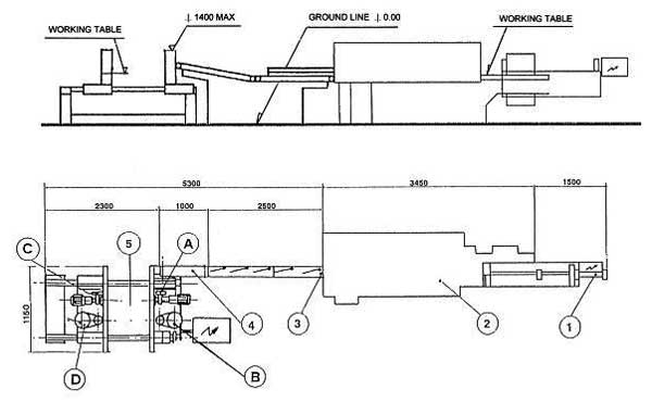 Линия состоит из автоматического загрузочного устройства (1), четырехстороннего 5-ти шпиндельного продольно-фрезерного станка (2), соединяющего транспортера (3,4), двухстороннего автоматического шипорезного станка (5).