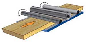 Верхние секционные подающие и прижимные вальцы позволяют параллельно (за один проход) обрабатывать заготовки разной толщины.