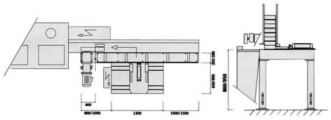 Заготовки из магазина с рольгангом подаются в поперечном направлении на рабочий стол продольно-фрезерного станка с помощью пневмоцилиндра, расположенного в середине автоподатчика. Обеспечивается подача как коротких, так и длинных заготовок. |