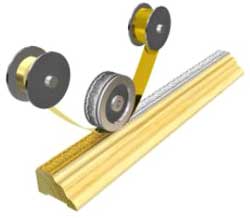 Предназначен для нанесения покрытия в виде позолоты, искусственного старения поверхности и т.п. с ленточного материала на профилированные рельефные багетные заготовки, декоративные элементы мебели и другие погонажные изделия методом термоперевода.