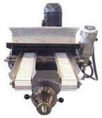 Станок имеет систему конвейерной подачи заготовок из двух цепей шириной 110 мм. Цепи снабжены резиновыми прокладками, обеспечивающими надежную подачу заготовок в процессе накатки рельефа без нанесения повреждений поверхности перемещаемого материала. Привод конвейера осуществляется от электродвигателя через редуктор с механическим вариатором для бесступенчатого изменения скорости подачи в зависимости от обрабатываемого материала. |