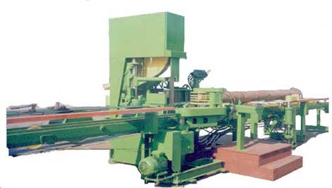 УСТРОЙСТВО: ленточная пила вращается через 2 шкива ф 1000 мм. Пильный узел неподвижен (эл/привод 26-30 кВт). Бревно совершает вместе с кареткой возвратно-поступательное движение за счет гидропривода. Подача плавно регулируется от 5 до 80 м/мин. Установка на размер выпиливаемого материала осуществляется перемещением базовой стенки относительно пильного полотна от пульта управления.