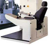 Отдельно стоящий центральный пульт управления станка с креслом позволяет оператору с удобного места производить