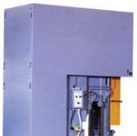 Ограждение ленточной пилы в зоне обработки обеспечивается защитным кожухом, перемещаемым с помощью гидроцилиндров
