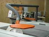 Длинная алюминиевая каретк??широки?поперечный стол позволяют устанавливат??перемещать относительно пильного механизм?лист?большого размер? Пильны?механизм включает ?се? дв?режущи?узла основную ?подрезну?пилу. Подрезная пила имее?попутное вращен? относительно подачи заготовк??за счет предварительного реза позволяет раскраиват?ламинированные лист?ДС?бе?появлен? сколов.