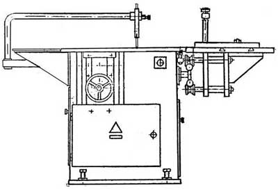Станок снабжен продольной кареткой установленной на закрепленной к станине скалках и имеющей зажим обрабатываемого материала что обеспечивает более высокую точность обработки и стабильность установленных размеров.