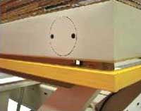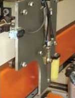 Привод верхнего прижима (прижимная балка) осуществляется от двух пневмоцилиндров, что обеспечивает жесткий и равномерный зажим плит ДСтП во время раскроя.