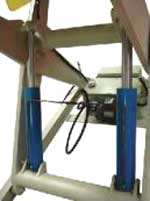Нижняя защитная рамка желтого цвета предназначена для обеспечения безопасности работы оператора. При контакте оператора с защитной рамкой в зоне подъема / опускания стола, по наличию сопротивления ходу рамки происходит отключение гидростанции и блокировка движения стола, что полностью исключает травматизм. |