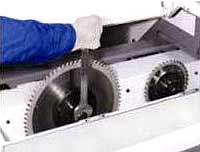 Крепление дисковых пил осуществляется вне рабочей зоны станка при помощи зажимных фланцев с механической системой блокировки. |