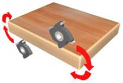 Позволяет облицовывать деталь натуральным шпоном. Шпон при такой обрезке не ломается, а аккуратно подрезается (тип ножниц). |