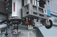 Высокоскоростной шпиндель с пневматическим разжимом инструмента можно вручную поворачивать в диапазоне ± 90 градусов. Шпиндель можно оснастить приводом для сменных головок, которые значительно расширяют технологические возможности обработки,( сверление, присадка и фрезерование сбоку под любым углом). Шпиндель имеет конус ISO 30, HSK F 63. |