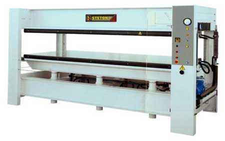 Пресс предназначен для двустороннего облицовывания плоскостей дверей, мебельных заготовок, облицовочных панелей, отбойных досок и т. д. шпоном ценных пород древесины, пластиком, а так же для сборки дверных полотен в условиях горячего прессования. Регулировка температуры прессования осуществляется термостатом. Пресс оснащен автоматическим таймером, контролирующим время выдержки. Пресс может поставляться с различными системами обогрева (электрический, на диатермическом масле или водяном) и с дополнительными промежуточными плитами.