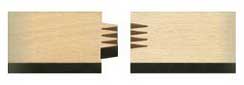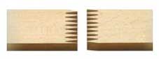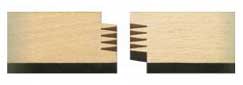 Станки автоматически производят базирование пакета заготовок, прижим, торцовку и нарезку шипа с одной стороны. Система гидравлических зажимов осуществляет надежное позиционирование пакета заготовок, что исключает возможность перекоса заготовок и гарантирует высокую точность нарезки шипов. Подача рабочих столов гидравлическая, что обеспечивает плавный рабочий ход и быстрый возврат рабочего стола. Станки оснащены тремя подрезными пилами (рис. 2), что позволяет изготавливать микрошип трех видов: без заплечиков (рис.3), с верхними и с нижними заплечиками , расположенными на одной линии(рис.4), и с заплечиками, сдвинутыми относительно друг друга (рис.5). Станок FSL150 (С) автоматически производит нанесение клея (рис.1).