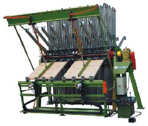 Частое расположение прижимов обеспечивает усилие до 6 кг на см2 склеиваемого щита и его равномерное распределение по длине щита, что удовлетворяет техническим условиям склейки древесины для всех клееных массивов.